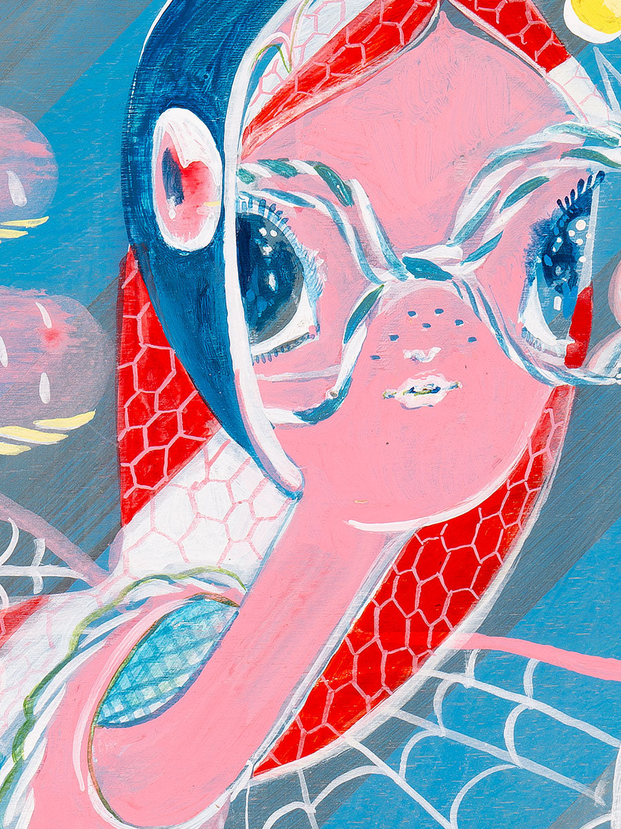I've taken to dressing in primary colors, in order to combat my all black all the time. As of late, this has very much impacted my work and its palette, and very much on view in this piece. I've been spending time in the garden at Ruth Asawa School of the Arts, so that's here too, with the beautiful trees, weeding the poison hemlock so other edible things can grow.
